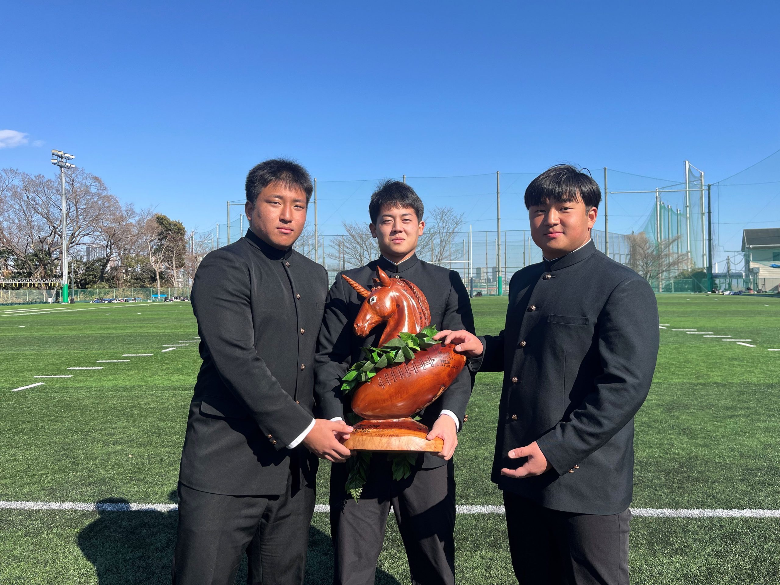 2026年度主将天野(写真左)・2025年度主将横手(写真中央)・2026年度主将丹羽(写真右)